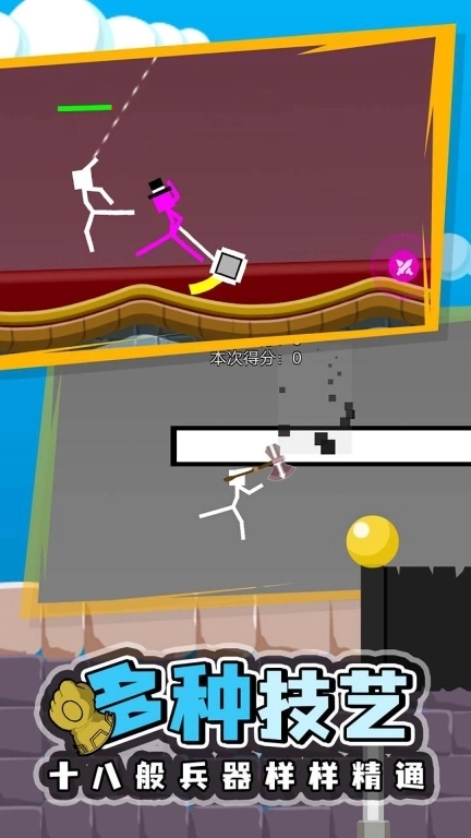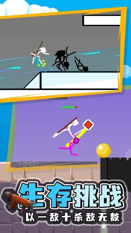 2、玩家操控火柴人展开最残酷的物理格斗,无论采用何种方式,最终目标都是将对手淘汰出局。