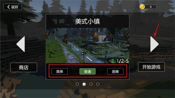 2、选择模式后,玩家可选择游戏难度和场景(小镇、工地、私人豪宅小岛等);