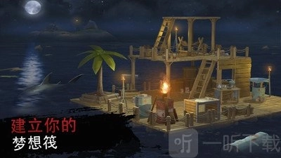 在筏式建筑游戏里,你能尝试打造新的武器与装备,探寻隐蔽的角落来提升筏子的生存条件,制作一把长矛,以此在这个生存模拟器游戏中抵御随处可见的凶猛鲨鱼,保护好自己!