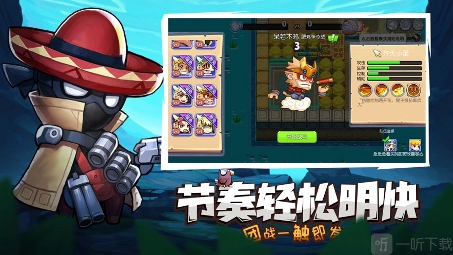开黑组队仅需5分钟就能搞定!游戏采用轻松幽默的2D卡通美术风格,操作简单易上手,战斗系统高度自由,走位更是灵活飘逸,绝对能带给你停不下来的全新体验!