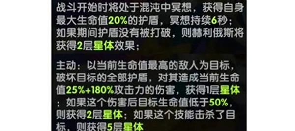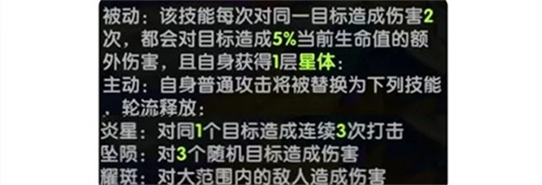 这个技能还有个主动效果,是一个伤害非常高的单体技能,还会破坏目标全部的护盾(天克光奶啊这),如果这个效果击杀了目标,则会获得大量星体层数