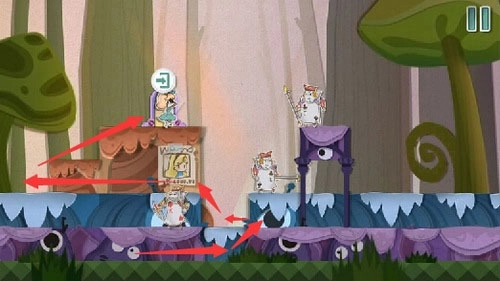 2、吃下变大蛋糕向前移动,可以将扑克兵赶走。