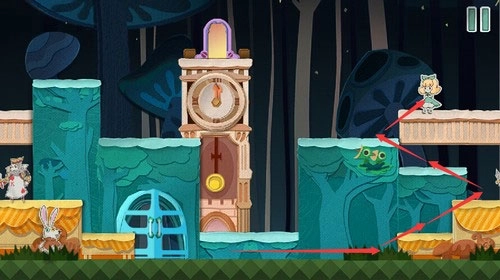 10、利用青色方块垫脚,进入时钟上方的门里即可顺利过关。