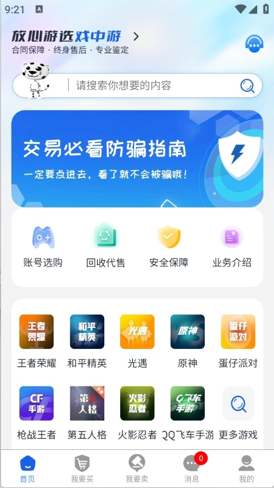 2、进入首页之后,首页页面有很多的游戏账号,王者荣耀、蛋仔派对以及和平精英等。