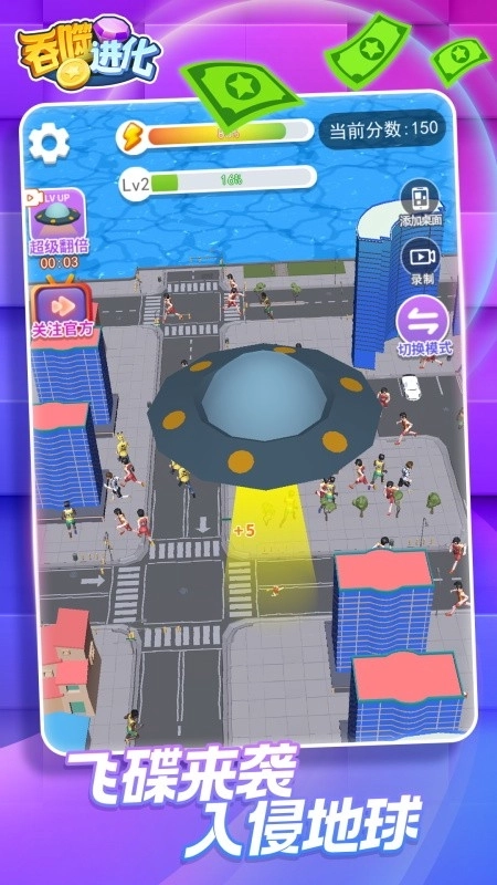 飞碟来袭,入侵地球,各种类型的吞噬物体都能收集,十分耐玩。