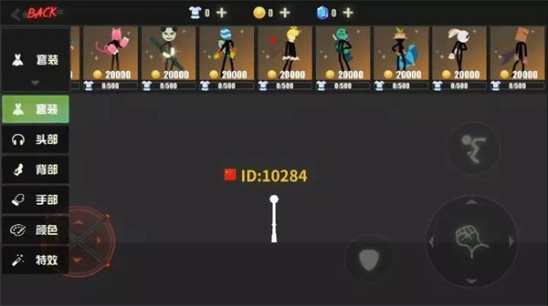 5、商城内提供几十套火柴人套装,包括身体装饰和特效,支持自由DIY搭配。