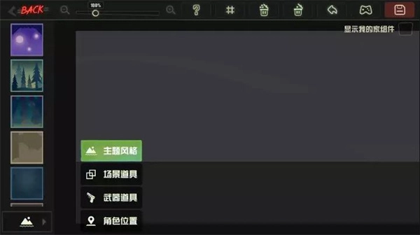 8、创意工坊按钮允许创建专属场景地图,支持自定义主题、道具和角色位置,保存后即可使用。