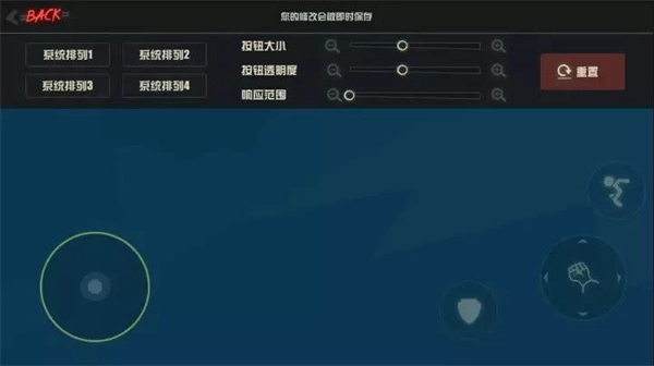12、自定义布局调整功能键大小、透明度和响应范围,提供四种排列方案保存。