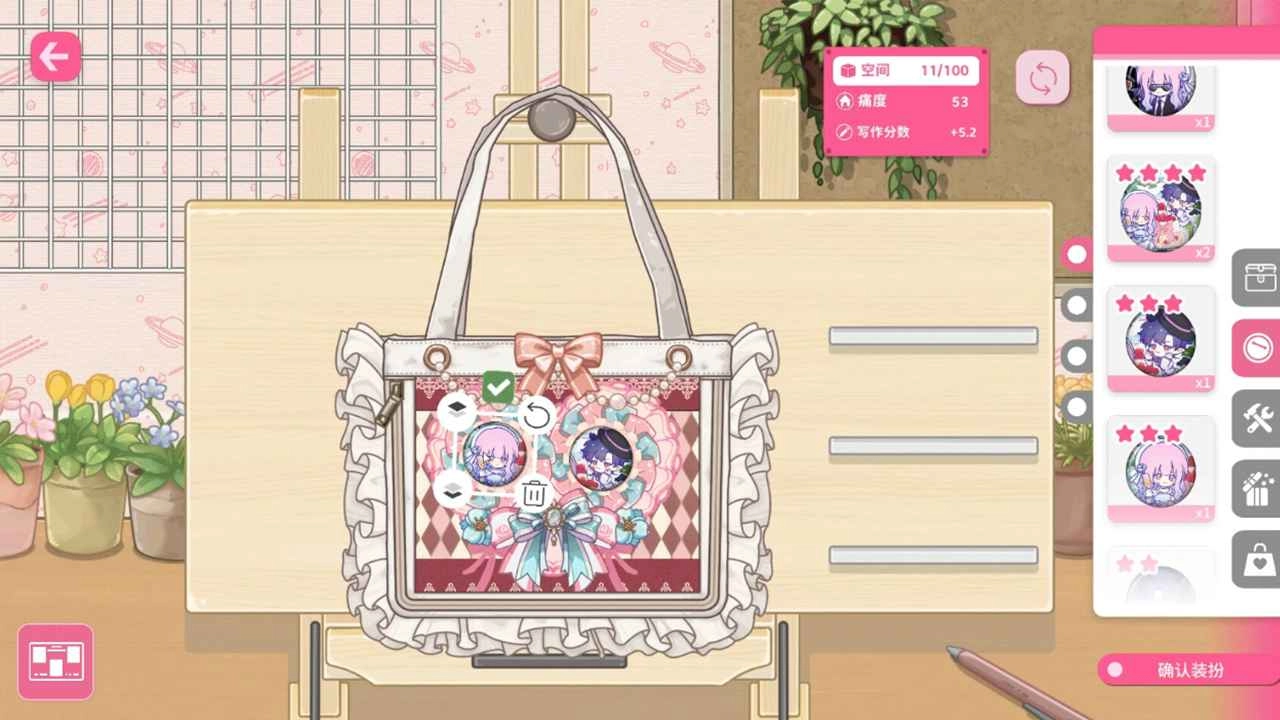 商店购买谷子或抽取扭蛋,布置房间扎痛包,拍照打卡。完成主线解锁漫展功能,当摊主布置摊位卖作品,或当游客逛展领无料。联机漫展输入好友码,组成大连摊。