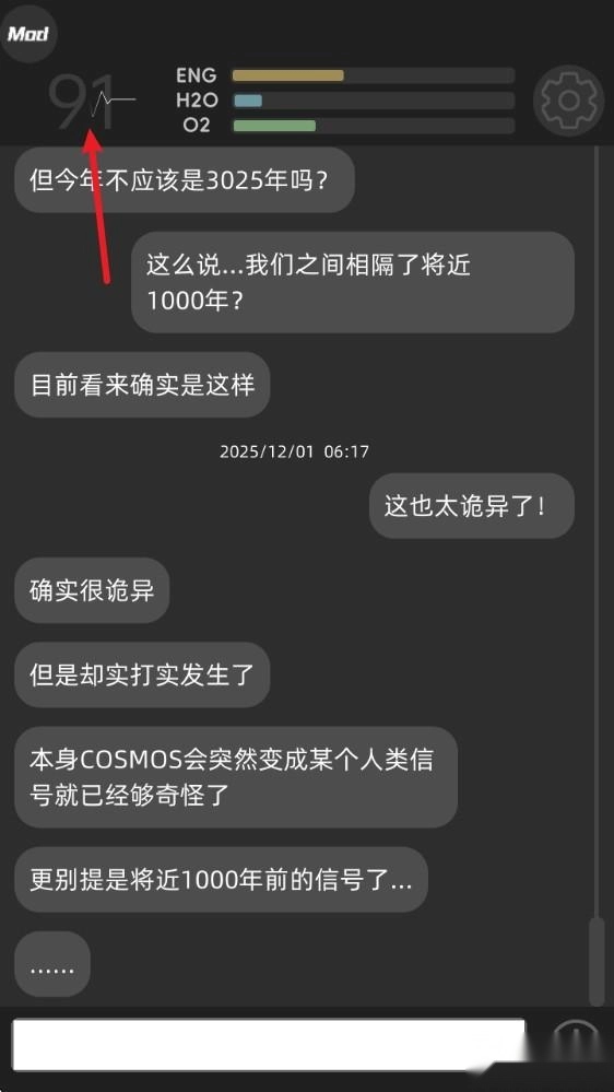 1、时间同步机制:通过COSMOS终端与千年后的Aliya对话,信息传递与现实时间流逝同步