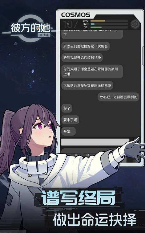 《彼方的她》是一款从电脑端完美迁移到手机的文字互动游戏。玩家将与身处千年后、被困于遥远星球的少女Aliya建立联系,通过跨时空对话展开冒险。这款移植作品保留了原版精髓,在触屏设备上带来流畅体验。你们将共同解决飞船难题,观察Aliya的生命体征数据,在丰富剧情中寻找真相。每一次对话抉择都会影响故事走向,多周目设计让玩家能探索五个截然不同的结局,逐步揭开隐藏的宇宙秘密。