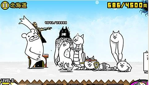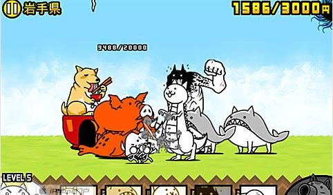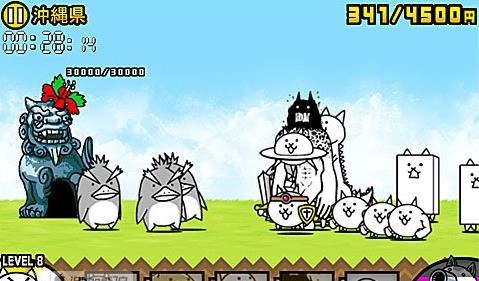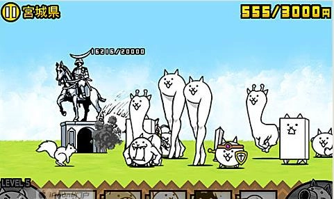 难度较高,建议升级喵蝙蝠至喵龙、鱼喵至喵鲸;敌人初期派出猪、犀牛等大型兵种,资金积累时间少;先派7-8个坦克喵配合猫炮抵抗,再出美脚喵、喵颈鹿、喵UFO和喵鲸;若被压制,使用神的帮助节省统率力。