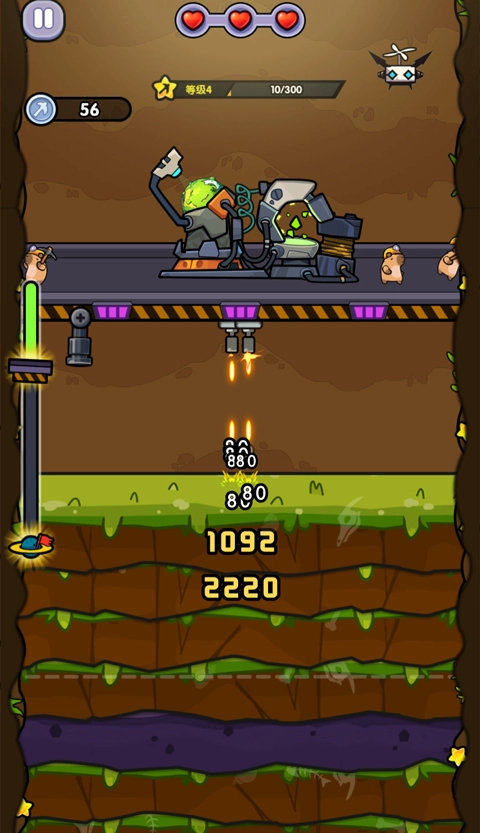 挂机也能冲榜,特效全开时手机都在震!技能升星机制超上头,三合一瞬间战力飙升。岩层随机生成永远有新鲜感,2000米后镜面怪考验操作。更新后电磁枪清怪神速,连击资源拿到手软。唯一缺点太上头,钻地心根本停不下来。