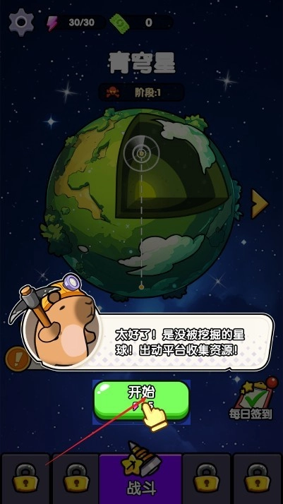 1、开局跟着指引点屏幕,选好钻头直接开干。