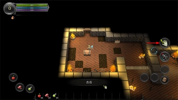 5、互动按钮开启机关物品。点击右侧手掌图标与宝箱或开关互动获取道具。