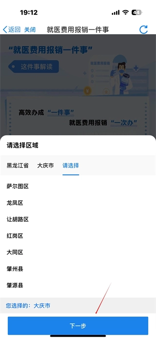 5、选医保区域后【下一步】。
