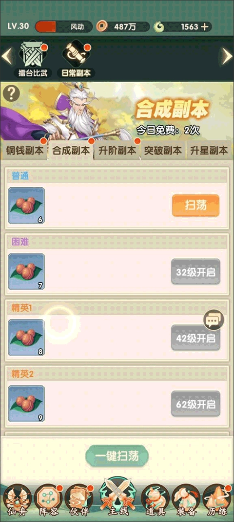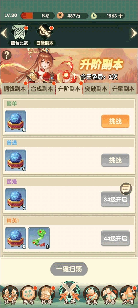 铜钱副本刷金币,解决前期缺钱问题。通关后扫荡省时,优先打完每日上限。
