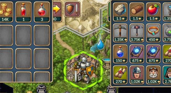 非战斗阶段专注领地经营。村庄商店购买装备,森林伐木获取资源。建造伐木场、矿场等设施保障资源供给,金币分配需平衡装备购买与建筑升级。