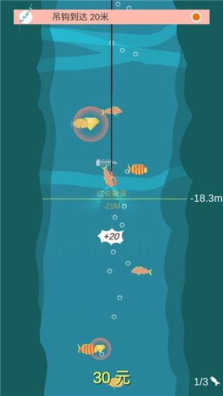 2. 指针滑到红色区域时甩竿,鱼钩飞得越远,钓到鱼的概率越高。