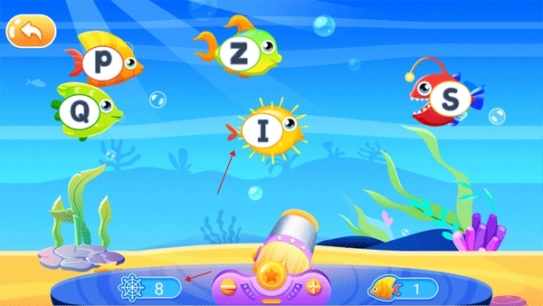 3、借助小炮里的渔网捕捉到正确的小鱼,就能一次性清除它周围所有的小鱼。