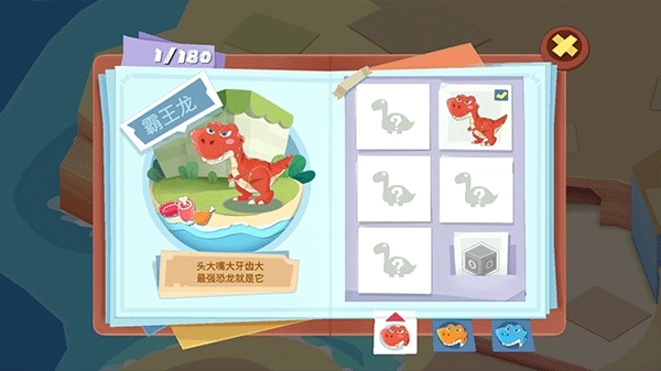 奇妙恐龙世界的最新版本是宝宝巴士打造的恐龙探险类游戏。在游戏里,小朋友们会跟随奇奇变身考古学家,亲手挖掘寻找神秘洞穴,发掘恐龙化石后拼搭骨架,还能复活恐龙,为它们搭建家园,进行喂食、洗澡等照料活动;同时得赶走试图偷走恐龙的大魔王,守护这个恐龙世界。另外,随着恐龙图鉴的不断收集,孩子们还能跟着奇奇妙妙这两位小讲解员,一起学习恐龙百科知识,了解不同恐龙的种类、身体特点和生活习性,以此激发求知的欲望,满足对恐龙世界的好奇心。总的来说,这是一款集多种功能于一体的益智学习游戏,是专门为宝宝定制的恐龙知识启蒙科普小站,能让宝宝轻松认识各种恐龙!