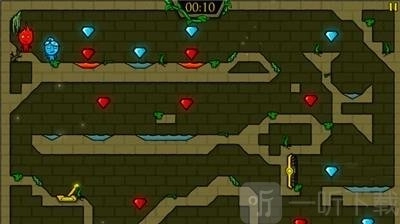 2.当液体面积过大人物无法通过时,寻找机制和石头,控制与液体同色的人物推石头,在液体中铺路,让另一个冰火人 经过。