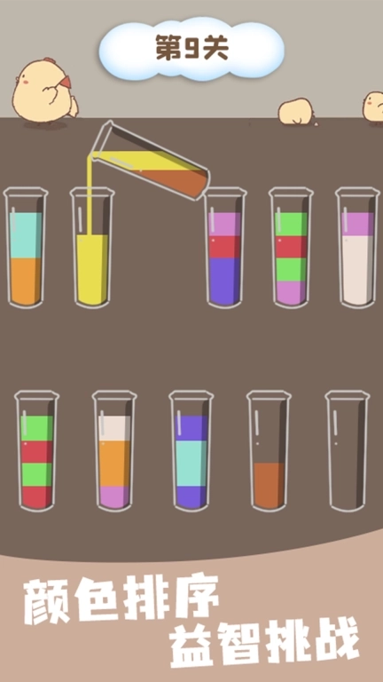 1、这是一个有趣而有趣的水杯分类游戏。玩家的关卡任务是对杯子中的有色水进行分类和排序。