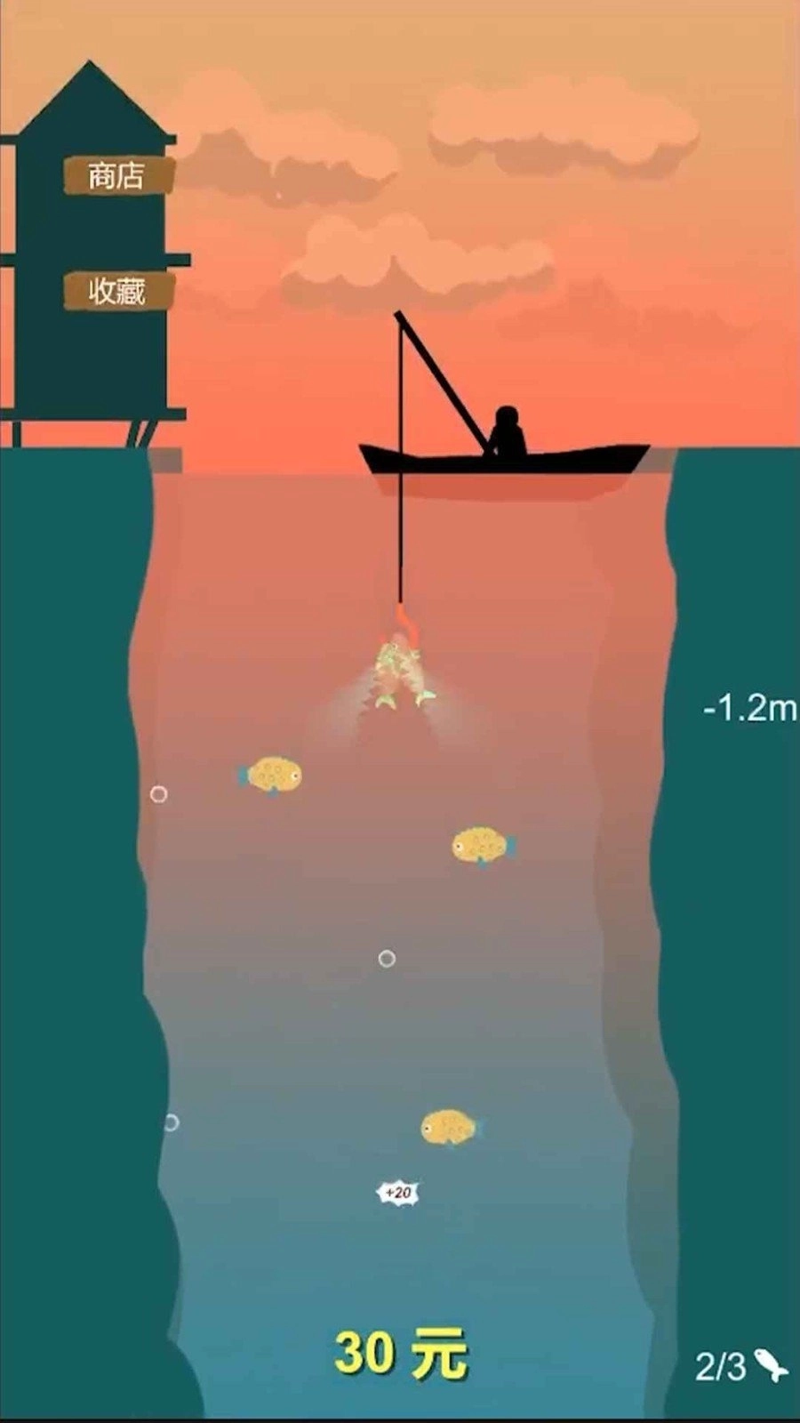 3、只需在屏幕上轻轻点击几下,就能钓起传说中的大鱼,就是如此简单,这般随性的钓鱼体验。