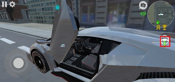 2、我们操控左下角的摇杆靠近车辆,车门处会浮现一个蓝色的把手按钮,点击该按钮即可开启车门;