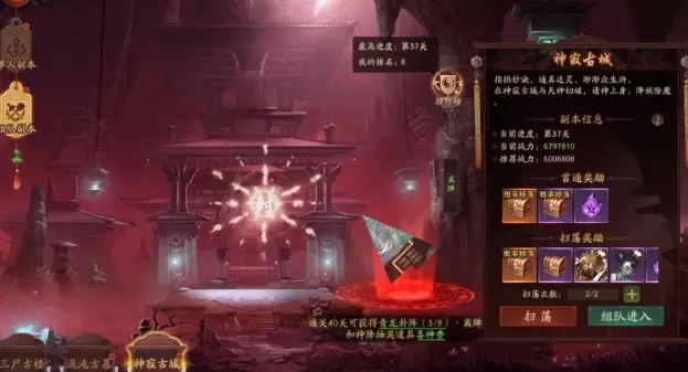8、神寂古城(210级开启),通关掉落初级神君元魄、神通宝箱、八卦牌等材料。有助于神君的养成。