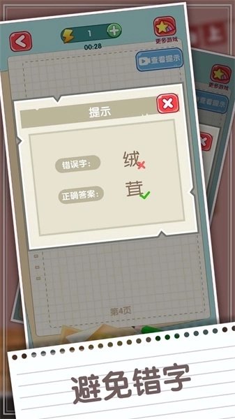 2. 玩法简单易上手,游戏会向玩家呈现一篇文章,玩家只需找出其中的错别字就能顺利通关。
