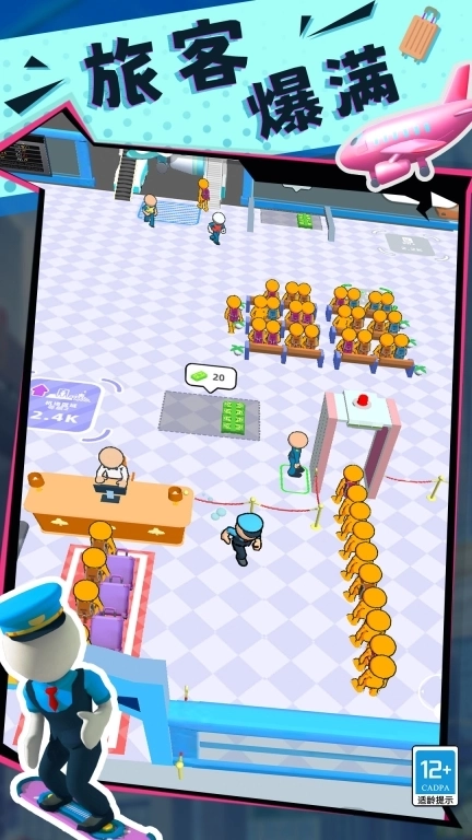 经营你的机场,亲切地招呼,贴心服务每个顾客,满足他们不同的需求。在这里,玩家作为机场地勤管理员,通过提供登机服务,检测安检,解锁区域,扩大机场营业规模,从小小的地方机场变成超豪华的国际机场。