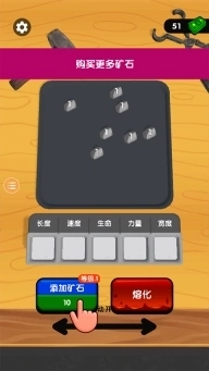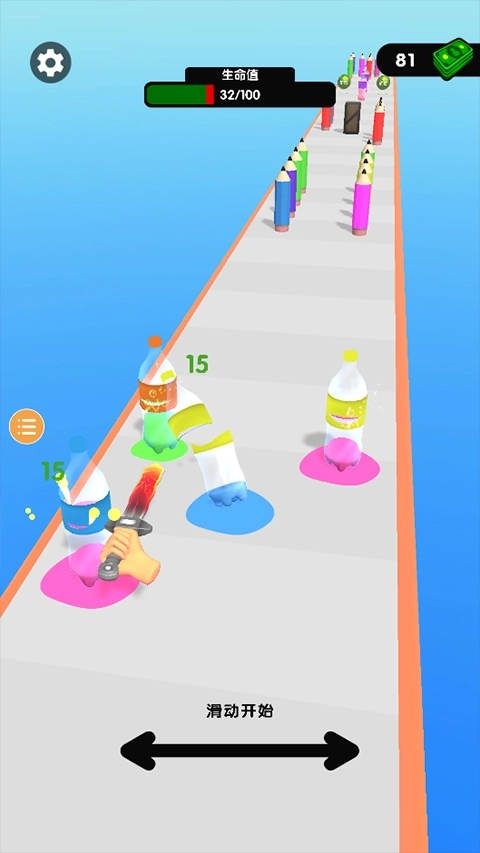 这款游戏的攻击自由度极高,玩家能随心所欲地用各种方式发起攻击。前方的障碍物会以铅笔、竹子、矿泉水瓶等不同形态出现,而玩家手中的宝刀,通过用游戏里获得的宝石在熔炉中铸造,会变成形状各异、锋利度升级的新宝刀。使用新宝刀,玩家就能击裂后续出现的钢筋、金块等障碍物,进而获得金币或金钱,去购买更好的材料继续铸造宝刀,让自己的宝刀更出众。有需要的玩家可以在本站免费下载畅玩。