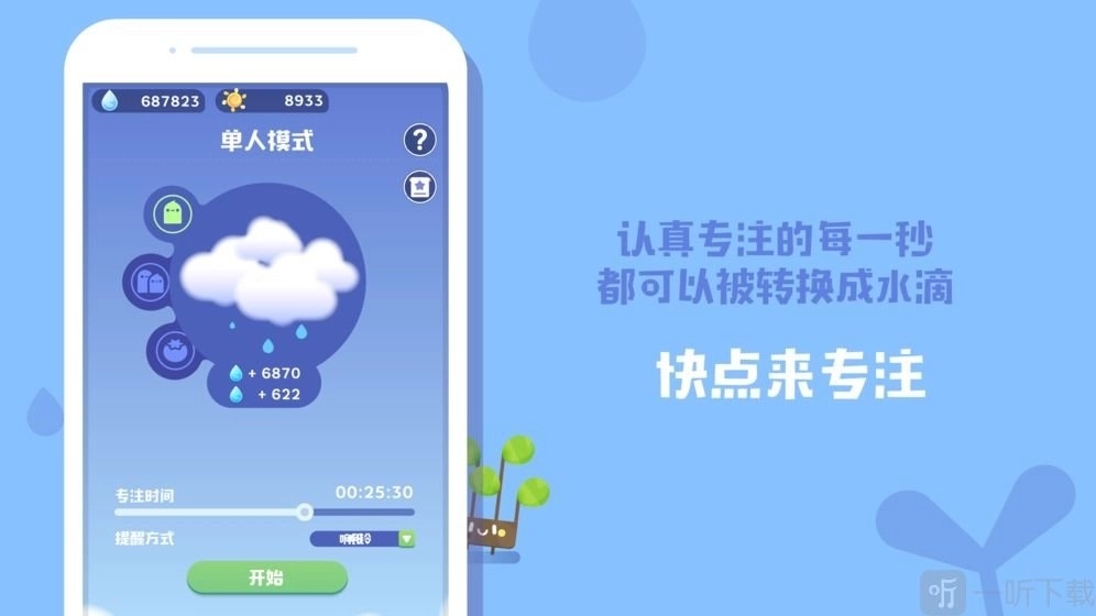 2.平台的存在要求每个人都保持专注,当您放下手机集中注意力时,会产生雨滴;
