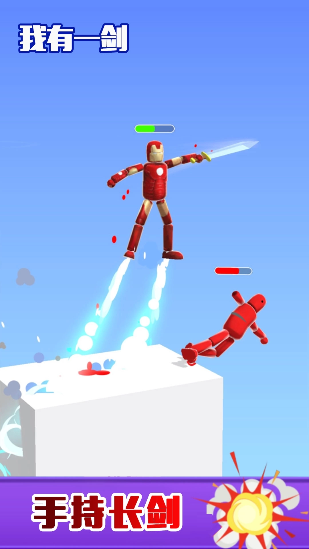 《我有一剑》是一款充满魔性趣味的搞笑格斗游戏,采用卡通风格的布娃娃战士作为角色形象。在游戏中,玩家能够自由操控专属角色,手持各式各样的剑类武器,与其他对手展开精彩的战斗对决。