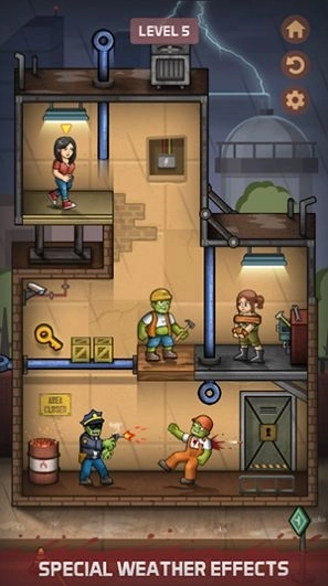 僵尸逃生拉动销钉是一款紧张刺激的闯关游戏,你将化身一位智勇双全的幸存者,在丧尸潮的侵袭下,必须找到安全的避难所以求生存。游戏内资源匮乏,你得合理规划并利用有限的资源,确保自身免受僵尸的威胁。此外,你还会遭遇紧急救援与冒险的挑战,需要做出关键抉择并应对各类未知状况。