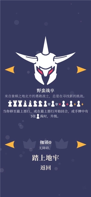 野蛮战卒最新中文版是一款基于国际象棋规则设计的轻量型益智回合制Roguelike游戏,玩法上基本遵循国际象棋的核心机制,玩家需要运用策略移动棋盘上的英雄角色,通过智取战胜对手。尽管游戏以国际象棋规则为基础,但独特的美术风格和趣味玩法令人耳目一新,超清的背景画面甚至可以直接用作手机屏保。
