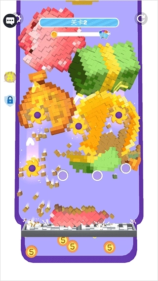 开心消方块是一款充满趣味的消除类手机游戏,游戏整体采用Q萌可爱的画风设计,搭配高清画质,视觉上给人十分可爱的感觉,能为玩家带来舒适解压的游戏体验。游戏玩法也很简单,玩家初期通过手指滑动切割方块,让方块掉落至齿轮下方转化为金币;随着金币积累,可解锁锯子、飞轮等道具提升消除效率,最终将所有方块消除即可通关。