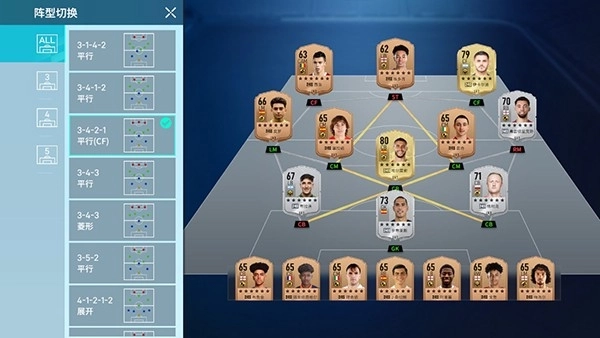 游戏内的球员能够切换多样的阵型,完成切换后可以重新进行评分,评分越高意味着阵容的强度也就越高。