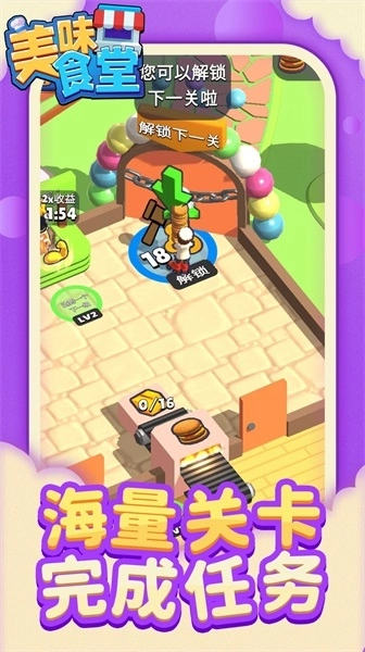 美味食堂是一款模拟经营类游戏,玩家可以运用各式各样的材料、食材与工具,打造出独具个人风格的美食。在游戏过程中,能够学习丰富的制作策略,完成各项美食目标,经营属于自己的店铺,吸引越来越多的顾客,逐步成长为真正的美食专家。此外,还能招聘员工,与他们一同协助管理店铺。游戏采用休闲娱乐的玩法,操作简单易懂,没有难度。