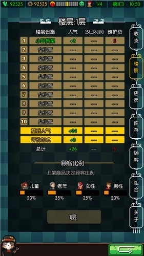 作为一部拥有卡通像素风格的作品,玩家在进行轻松经营活动的过程中也能和不同的角色进行精彩的对话,是一部拥有自由度超高的游戏作品,你要在其中完成进货、招募员工等活动。