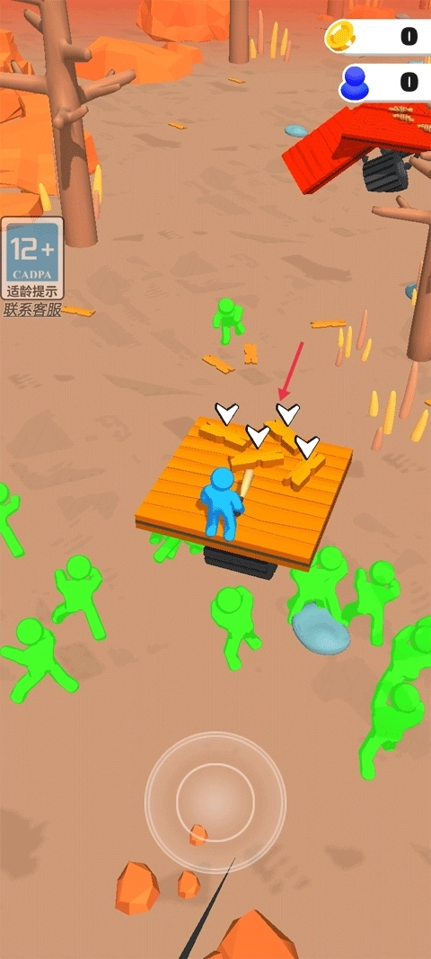 1、游戏的开端是小蓝人的飞机遭遇事故坠毁,落在了小绿人所在的区域附近,而小绿人是僵尸,小蓝人需要靠近那些散落的破碎小木板。