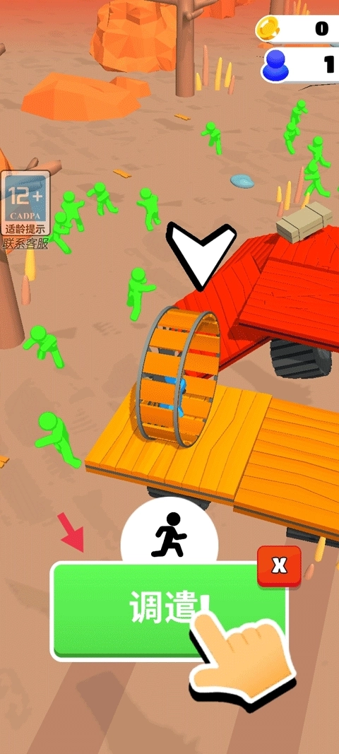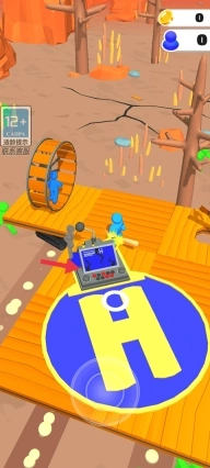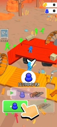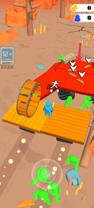 4、当小蓝人碰见同样颜色的小蓝人,就可以解救他。并调遣他一起移动滚筒移动木板。
