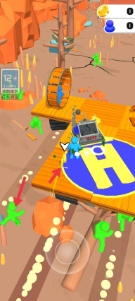 6、小蓝人可以通过不断攻击小绿人,将他打败之后就能获得金币。当金币达到一定的数量,就可以修理好收发器了。这时就会有一架飞机来解救你们到达基地。