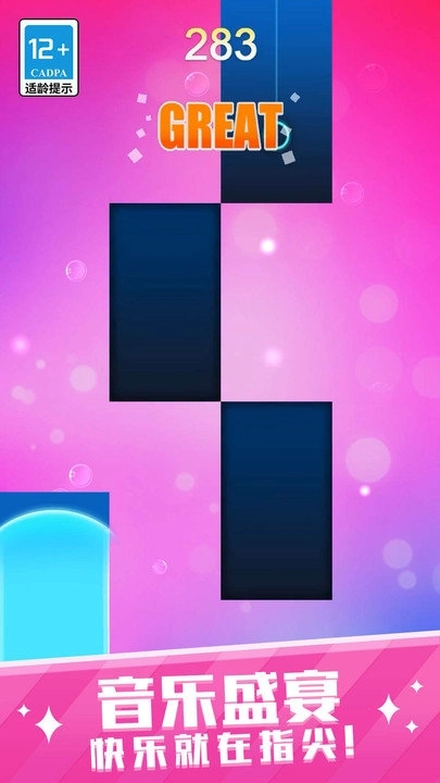 3.游戏画面简洁明了,音质出色动听,带你尽情沉浸在美妙的音乐世界里。