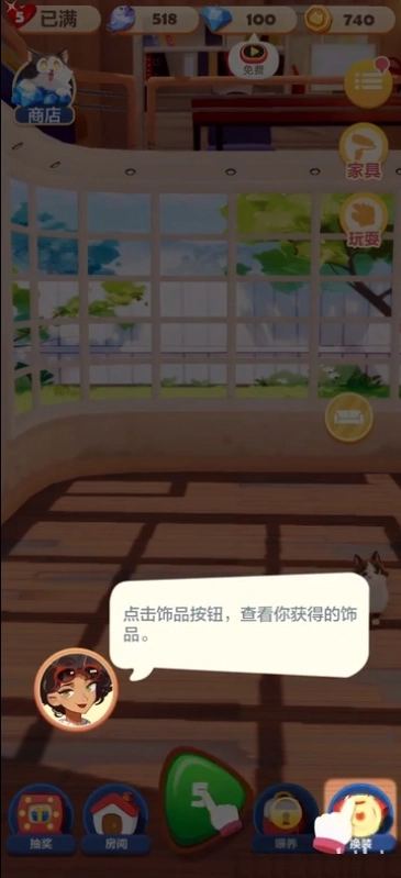 5、在游戏主界面点击【闯关】按钮,通过这种方式可以获取更多金币,用于清理窗户。