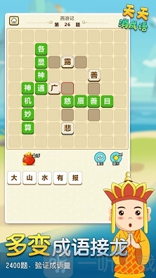 《天天消成语》是一款男女老少都爱玩的成语消除小游戏。它采用卡通风格的画面,让低龄玩家也能轻松找到游戏的乐趣;内置海量成语,涵盖各类知识范畴,设计独具巧思。在这里,玩家既能享受游戏带来的休闲体验,又能学习丰富的成语知识、扩充自身的知识储备。喜欢成语的玩家,可千万别错过这款有趣的小游戏!