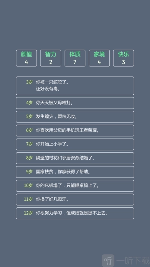 游戏以文字为载体推动剧情发展,带来极为舒适的游戏体验;清爽简约的画风能让玩家感到放松,不同的事件选择会导向角色各异的成长路线,自由度颇高。玩家可在游戏中体会百态人生,最终结局由自己亲手决定。