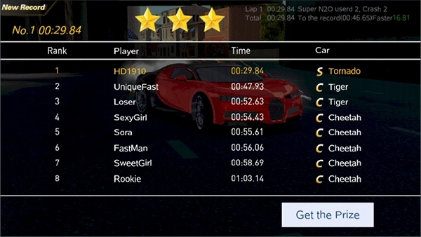 4、拾取赛道中的氮气瓶进行加速,体验飞一般的感觉;