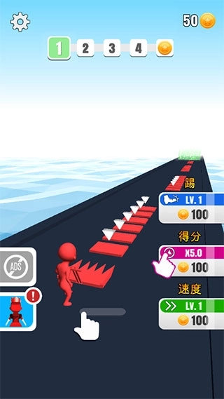 1、游戏中玩家需控制小人左右移动不断躲避障碍物向前奔跑